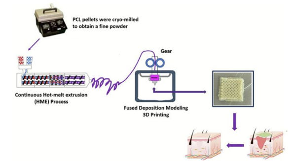 雖然傳統(tǒng)的專用支架生產(chǎn)技術(shù)包括靜電紡絲、溶劑成型和冷凍干燥等,但這些方法都存在制造缺陷。為了克服這些局限性,密西西比大學(xué)的研究團隊轉(zhuǎn)向了3D打印技術(shù)。